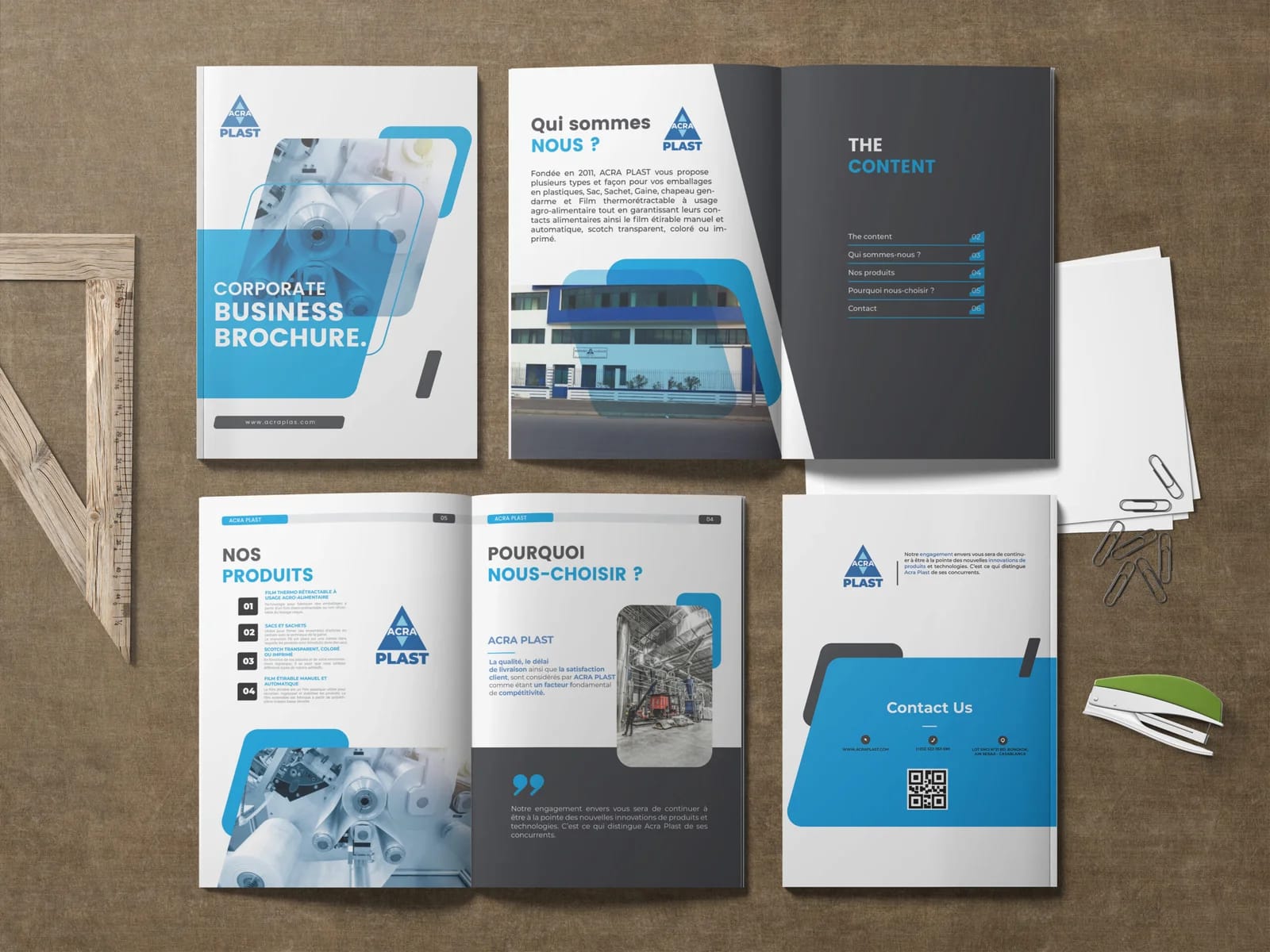 Nous avons mis en œuvre un processus de conception rigoureux, en tenant compte de la charte graphique d’Acraplast. Les rabats ont été optimisés pour une tenue sécurisée des documents. Le choix des couleurs et des typographies a été fait pour renforcer la reconnaissance de marque.