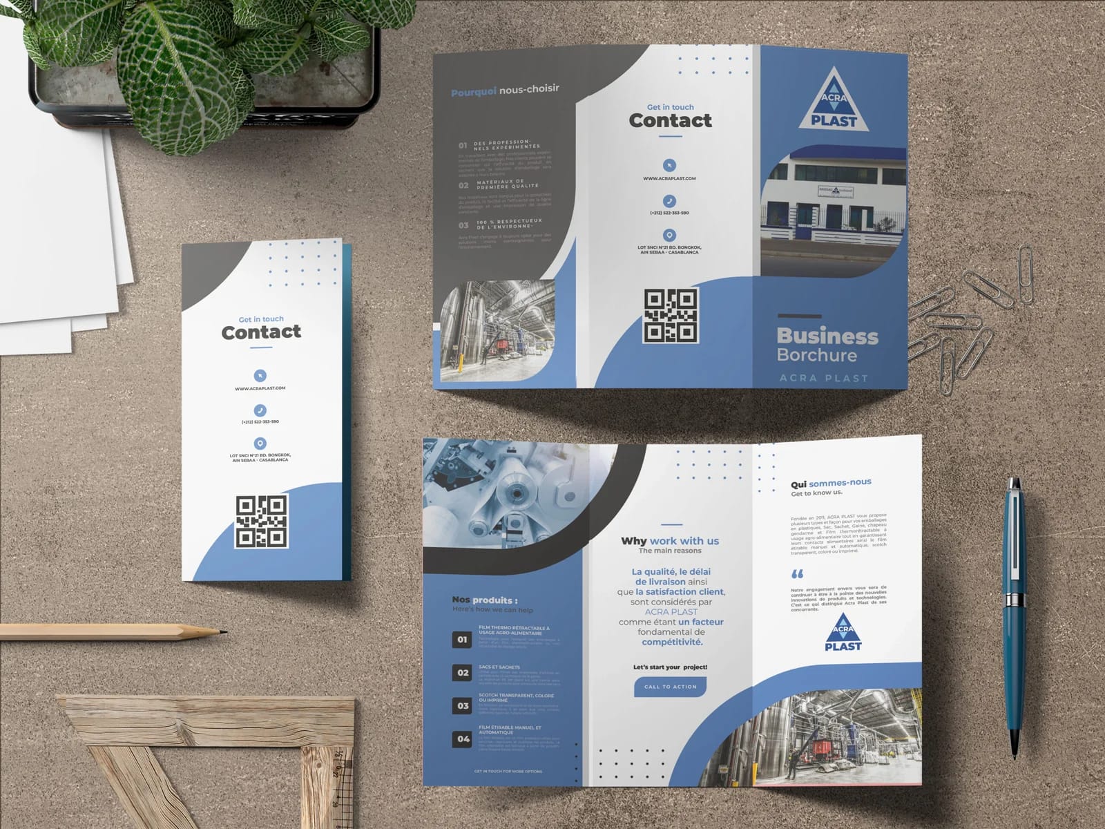 Nous avons mis en œuvre un processus de conception rigoureux, en tenant compte de la charte graphique d’Acraplast. Les rabats ont été optimisés pour une tenue sécurisée des documents. Le choix des couleurs et des typographies a été fait pour renforcer la reconnaissance de marque.